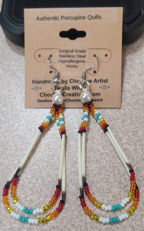 Genuine Porcupine Quill earrings in a double loop style.